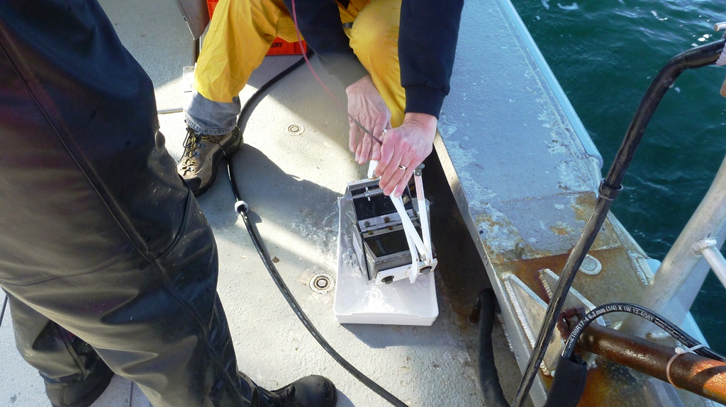 We use a winch to drop and retrieve our bottom samplers. This can be preferable to dropping the sampler that is attached to a line and retrieving it by hand...especially in deep waters.